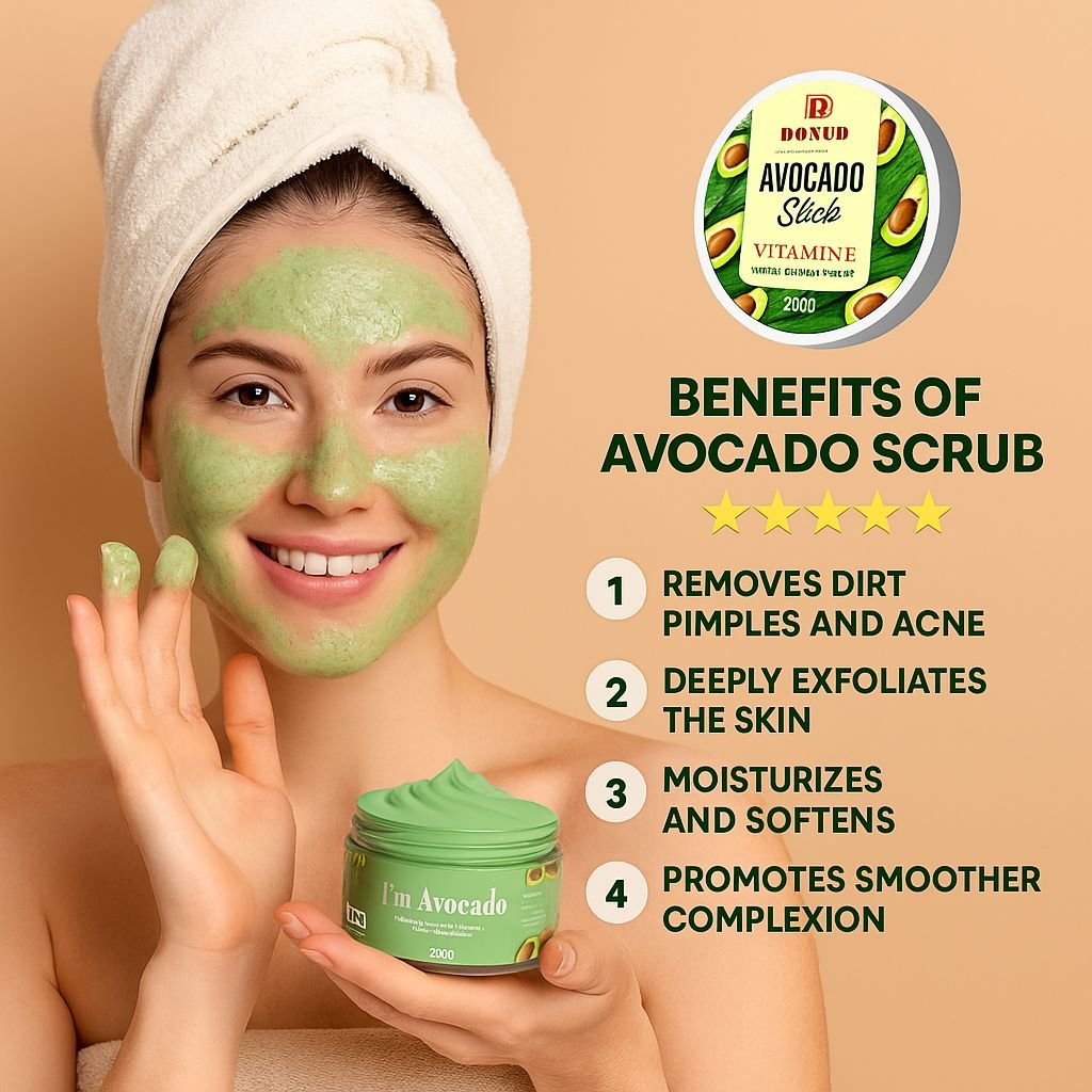 DR MED Avocado Vitamin E Scrub with Natural Essential Oils – 220g Deep Nourishing Exfoliator for Face – Hydrates, Brightens, Removes Dead Skin, and Restores Radiant Glow – Gentle Skincare for All Skin Types