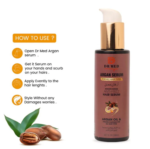 DR MED Argan Hair Serum is likely formulated with argan oil, known for its moisturizing and nourishing properties. Argan oil is rich in vitamins, antioxidants, and fatty acids, making it beneficial for hair health. This serum may aim to provide intense smoothness, reduce frizz, and enhance the overall appearance and manageability of your hair.